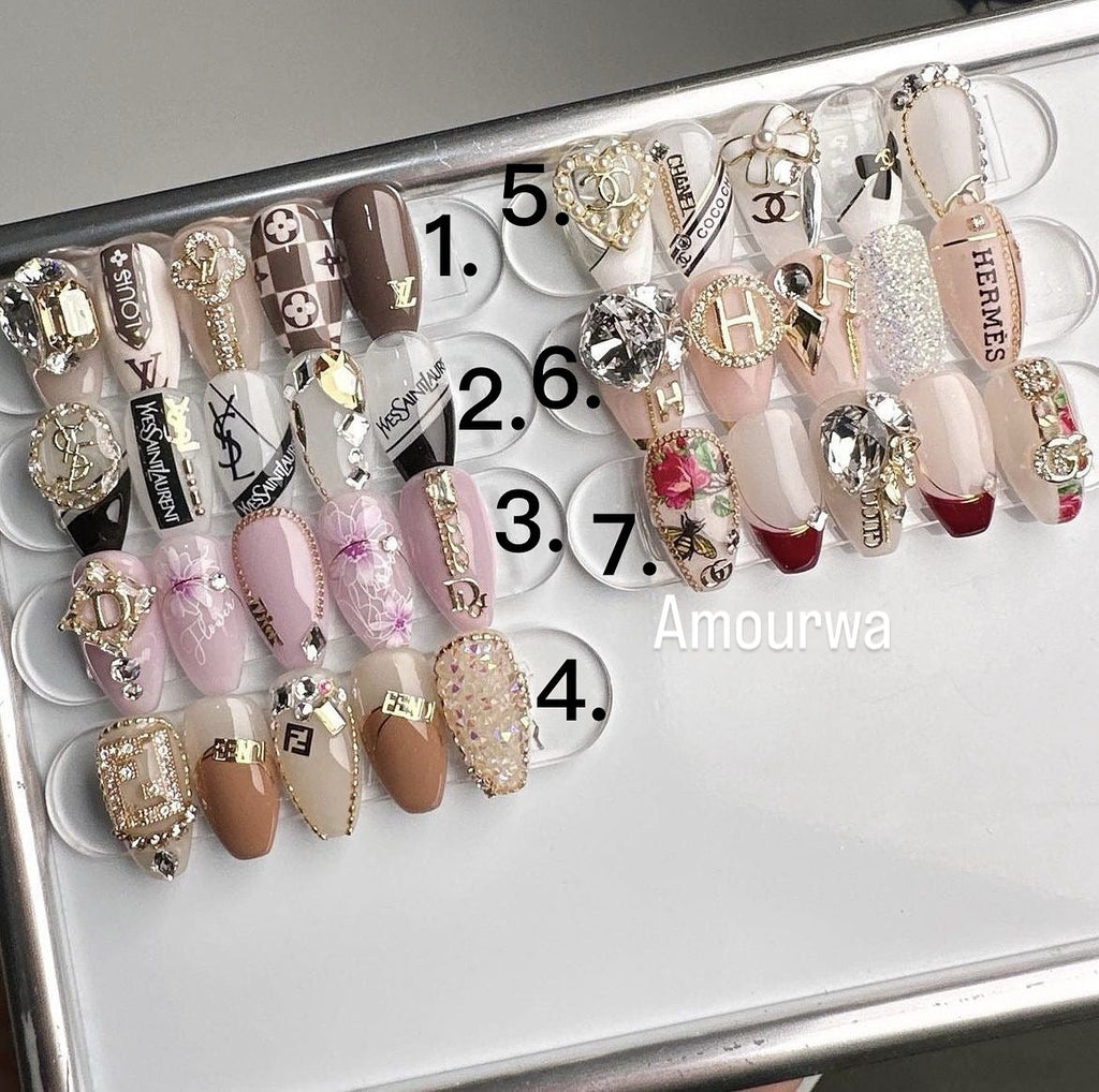 NO.421 Amourwa Personalized Press-On Nails Luxury Nail Art LV Nails ChanelNails DiorNails YSLNails Worldwide Shipping