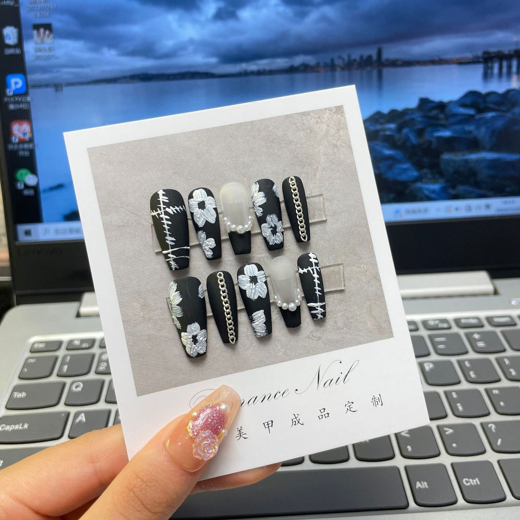 NO.31Amourwa custom T Type Nails Black Camellia Rhinestone Nail Long-lasting Resuable Press On Nail